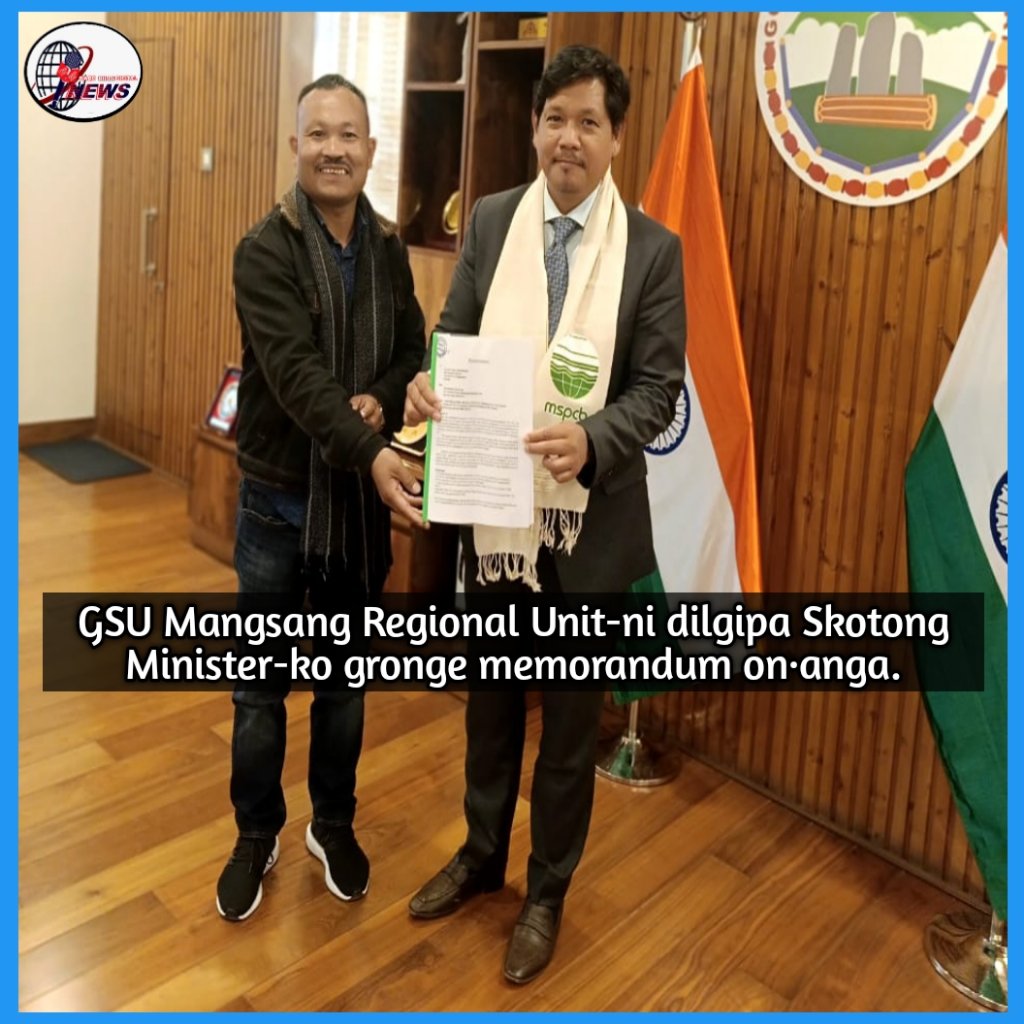 GSU Mangsang Regional Unit-ni President Barnawel R.Sangma-ni u·iatani gitade, Mangsang-oni Riangdoh-ona re·gipa rama namen sepangbatgipa ong·a aro Rongjeng-oni Shallang-Riangdoh ramana bate, Mangsang gita re·gipa ramaan bakkandikbatgipa aro seng·sotbatgipa rama ong·a. Uni gimin ia ramako ta·rake tarie on·pachina Skotong Minister-ko mol·molbaaha.