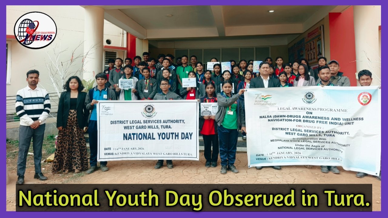 Tura, January 14, 2026: The District Legal Services Authority (DLSA), West Garo Hills, Tura, in collaboration with the Meghalaya State Legal Services Authority (MSLSA) and under the aegis of the National Legal Services Authority (NALSA), observed National Youth Day by organizing an awareness programme under the DAWN (Drug Awareness and Wellness Navigation) Scheme, 2025 at Kendriya Vidyalaya School, West Garo Hills, Tura, on Tuesday at 11:00 A.M.